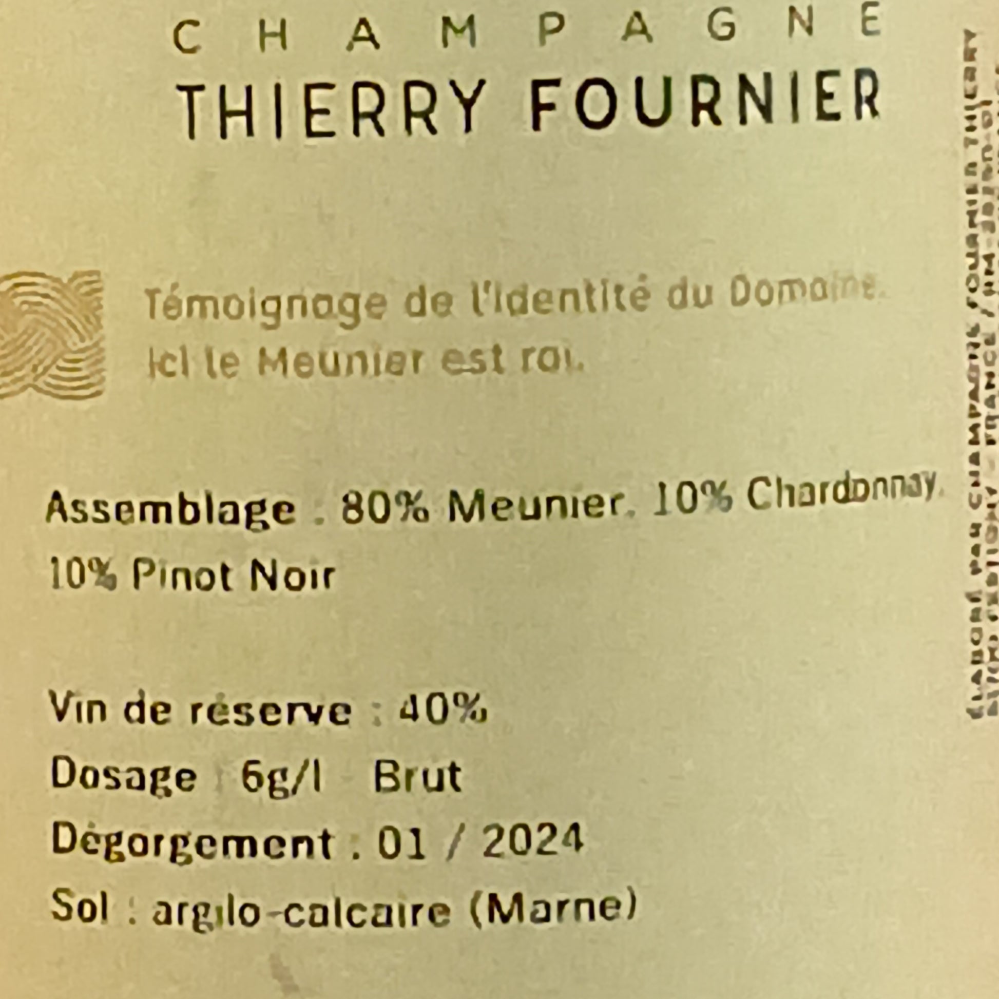 一般的な生産者よりも瓶内熟成期間を長く費やすのも特徴。ピノ・ムニエらしい豊かな果実味とアロマを持ちながらもエレガント、フィネスと複雑性を持ったシャンパーニュに。