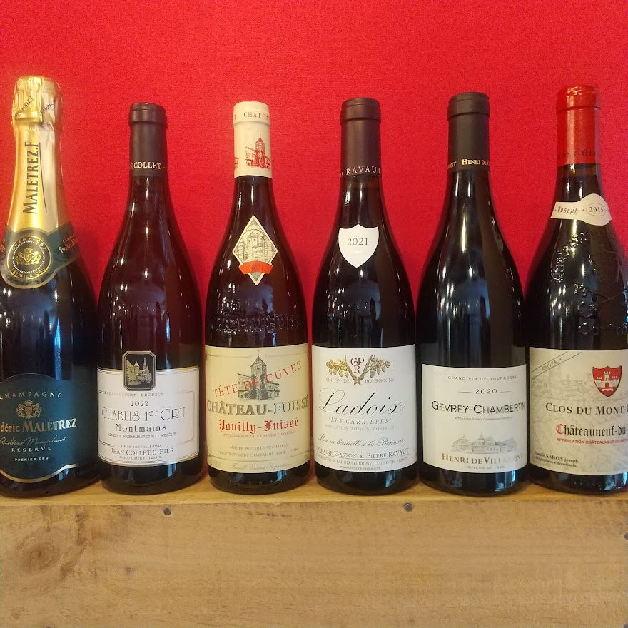 シャンパーニュ プルミエ・クリュ、ブルゴーニュ プルミエ・クリュ、ジュヴレ・シャンベルタン、2015年熟成シャトーヌフ・デュ・パプ